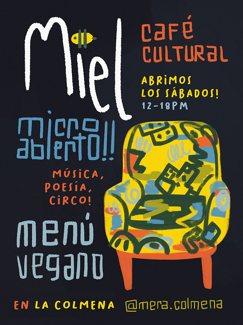 Carteles para café cultural Miel, dentro de La Colmena (San Pancho, Nayarit)